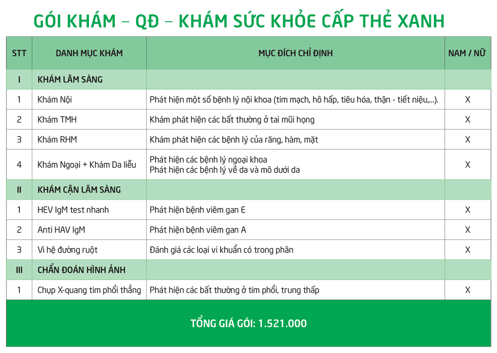 Gói khám – QĐ – khám sức khỏe cấp thẻ xanh